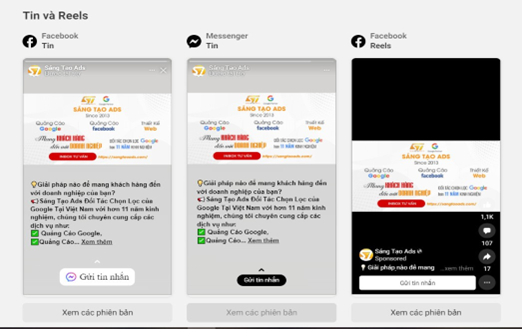 Minh họa quảng cáo hiển thị ở Tin Facebook, Reels Facebook, Tin messenger