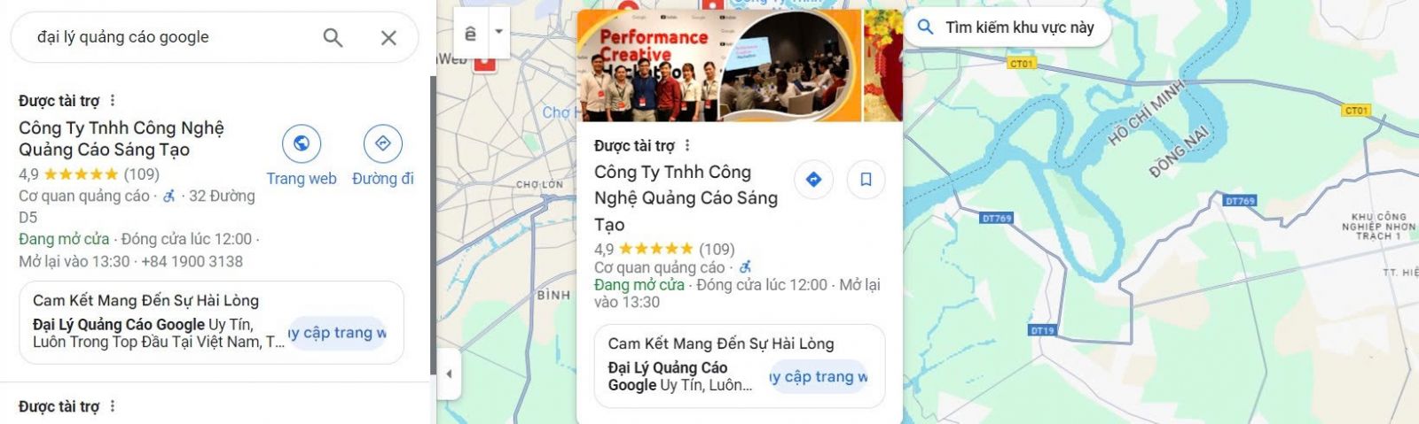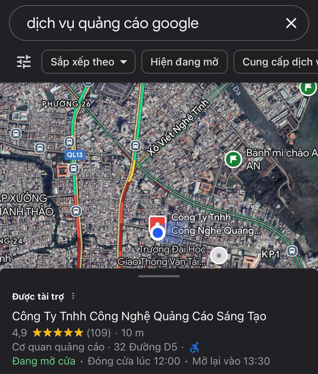 Đây là loại quảng cáo xuất hiện trên kết quả tìm kiếm của Google Maps khi người dùng tìm kiếm các từ khóa liên quan đến doanh nghiệp của bạn. Quảng cáo Tìm Kiếm Địa Phương thường bao gồm thông tin như tên doanh nghiệp, địa chỉ, số điện thoại, website và logo doanh nghiệp .
