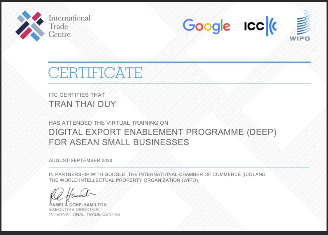 Chương trình hỗ trợ xuất khẩu kỹ thuật số (DEEP) dành cho doanh nghiệp ASEAN do ICC, Google và ITC triển khai.